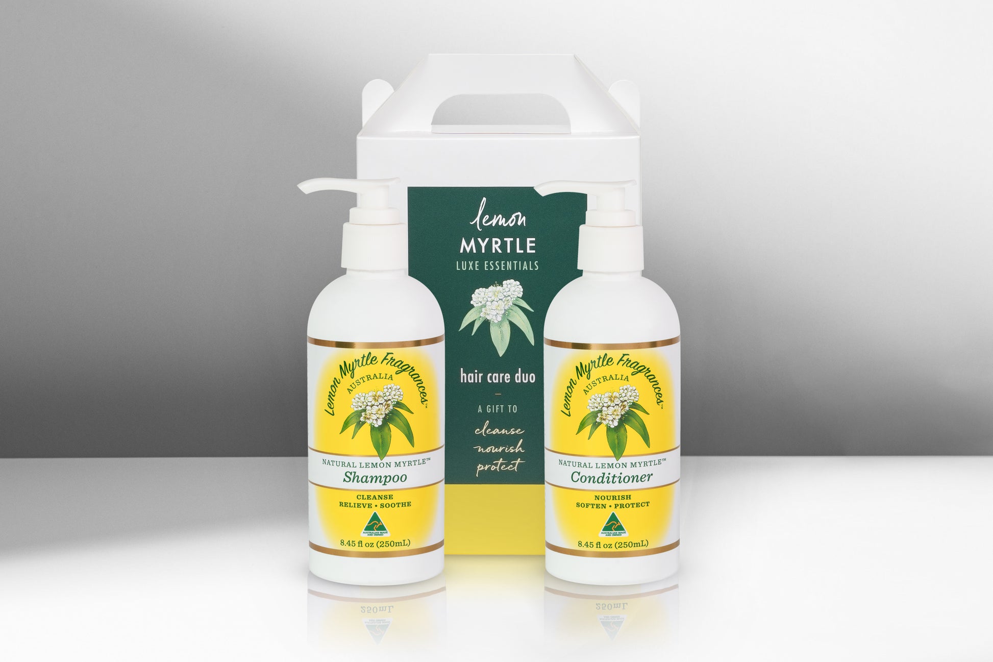 This handy carry case contains 1x 250ml Natural Lemon Myrtle Shampoo & 1x 250mL Natural Lemon Myrtle Conditioner.