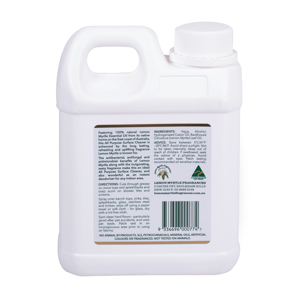 Featuring 100% natural Lemon Myrtle Essential Oil from its native home on the East Coast of Australia, this All Purpose Surface Cleaner is enhanced by the long lasting, refreshing and uplifting fragrance Lemon Myrtle is known for.